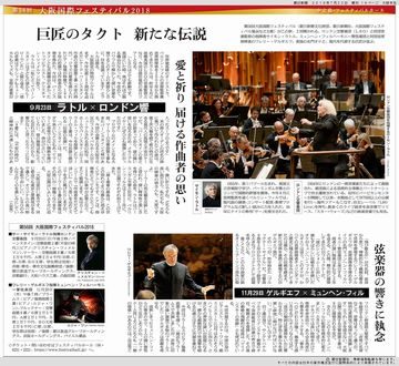 2018年7月22日(日)付の朝日新聞大阪本社版朝刊に掲載された「第56回大阪国際フェスティバル2018」の特集記事を紹介します。